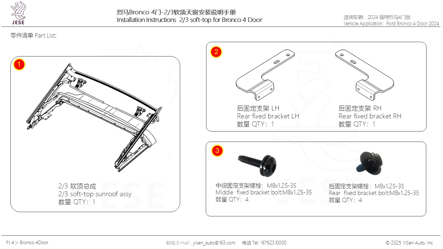 JESE 2/3软顶天窗安装指导-适配福特烈马4门版